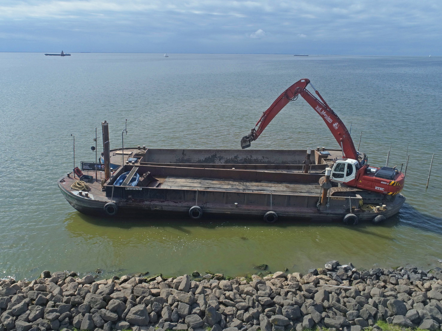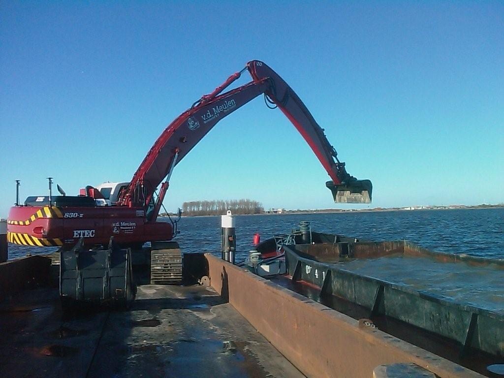 Dit ponton is voorzien van een Etec 830RLC (2008) welke speciaal is aangepast aan onze wensen. Zo is de giek verlengd, ballast verzwaard en de cabine verhoogd om een beter zicht te hebben op het lossen van bakken. Het ponton heeft twee hydraulische, op afstand bediendebare spudpalen. Met deze spudpalen kan de bak worden op getild zodat deze stabieler ligt, dat verbetert het baggeren. De kraan kan worden uitgerust met een 2 m³ slotenbak, een 600 l. poliepgrijper of een overslaggrijper van 1000 l.